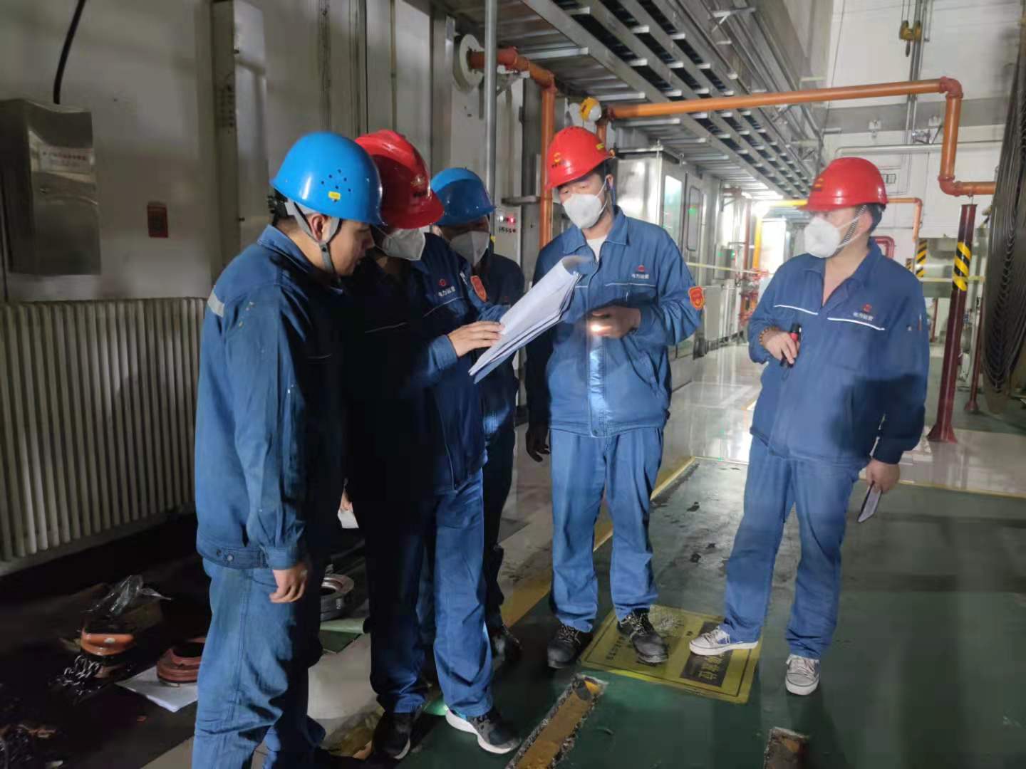 針對極端高溫天氣,趙石畔項目部6月份就制定了相關(guān)應對措施,對易超溫的重點設備及重點部位掛超溫檢查記錄本,要求各專業(yè)及管理人員進行高頻次巡查并登記,對各部位散熱器、水冷系統(tǒng)、間冷塔等區(qū)域加強巡檢,加強冷卻水管路檢查疏通等定期工作,多次組織火災隱患和消防系統(tǒng)專項檢查并監(jiān)督整改治理,將設備隱患和火災隱患消滅在萌芽狀態(tài)。