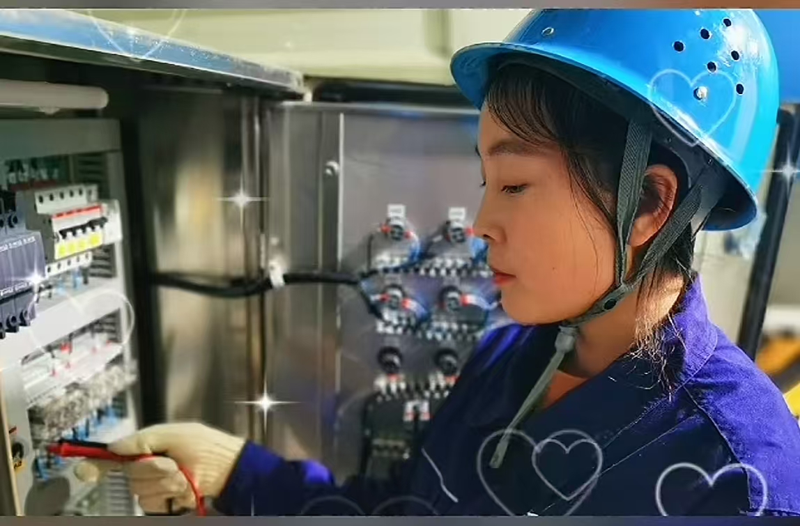 “霞子”真名殷榮霞,趙石畔項(xiàng)目部電氣專業(yè)檢修工,一個(gè)地道的陜北姑娘,1米6左右,梳個(gè)大辮子,大眼睛,兩腮略帶一點(diǎn)風(fēng)沙紅,膚色看著很健康,用含蓄一點(diǎn)的詞來(lái)表達(dá)靚麗程度,就是“穿著工裝也不失色”。女人愛(ài)美的天性,沒(méi)有讓她因?yàn)樵谵Z隆的機(jī)房?jī)?nèi)工作,要接觸灰塵、要流汗而停止,“唇彩、眼影、畫眉……”時(shí)不時(shí)還會(huì)閃亮登場(chǎng),伴隨她走進(jìn)廠房一起工作,就像名字中的“霞”字一樣,不失靚麗。