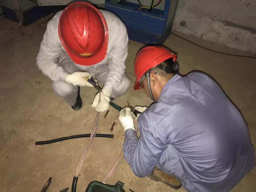 10:00,200米電纜鋪設(shè)到位,班組成員分為兩組,從電纜兩端同時(shí)開始作業(yè),割開絕緣、壓接銅鼻子、確認(rèn)相序、開關(guān)端子接線緊固、搖電纜絕緣、開關(guān)送電,一氣呵成。